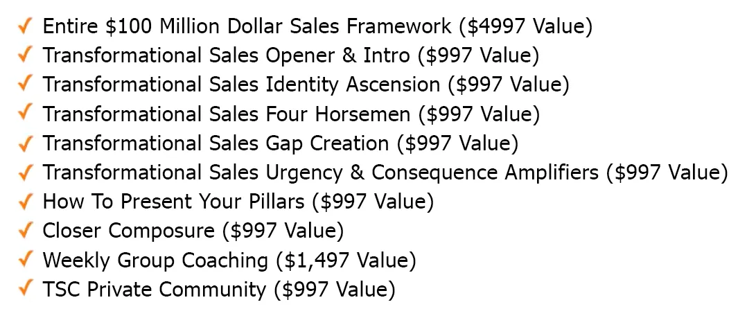 Here’s everything you get INSTANT access to when you join right now! Entire $100 Million Dollar Sales Framework…