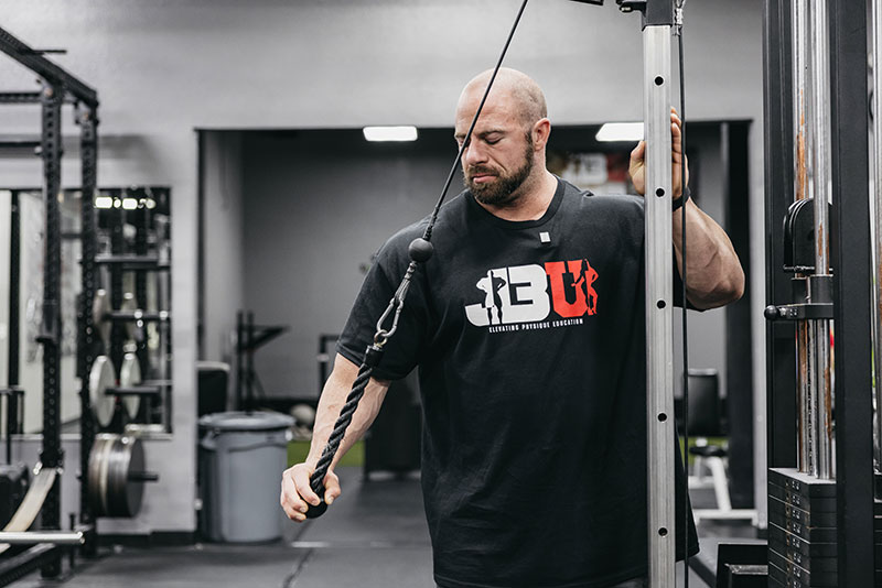 We cover push downs, dips, skull crusher variations, and pressing variations to make that happen. We both have struggled with nagging wrist and elbow pain, which can be resolved by finding the right positions to work in and using set up that keep the joints from reaching compromising end ranges.