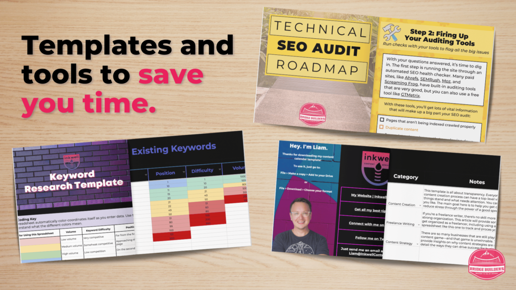 Now, picture the kick you’ll get out of quickly nailing down the right keywords with the Perfect Keyword Research Template, presenting nifty content ideas to clients using the SEO Content Calendar Template, or cruising through a technical SEO audit with the SEO Audit Roadmap.