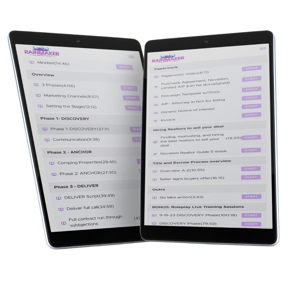 These lessons walk you step-by-step through all three stages of the Rainmaker Novation Strategy my students are using to successfully close novation deals averaging $30k.
